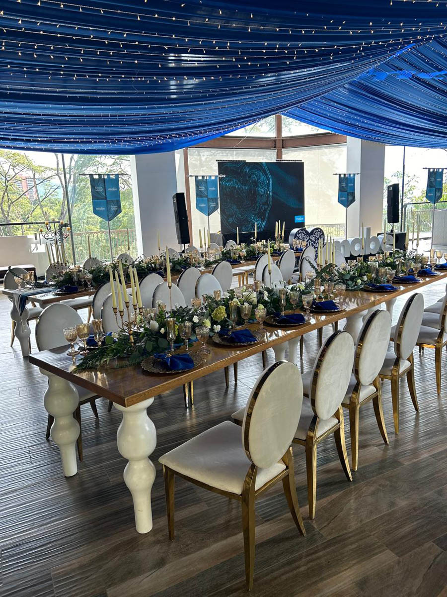 Mesas redondas o rectangulares: 250 personas Tipo cóctel: 500 personas Tipo escuela: 120 personas